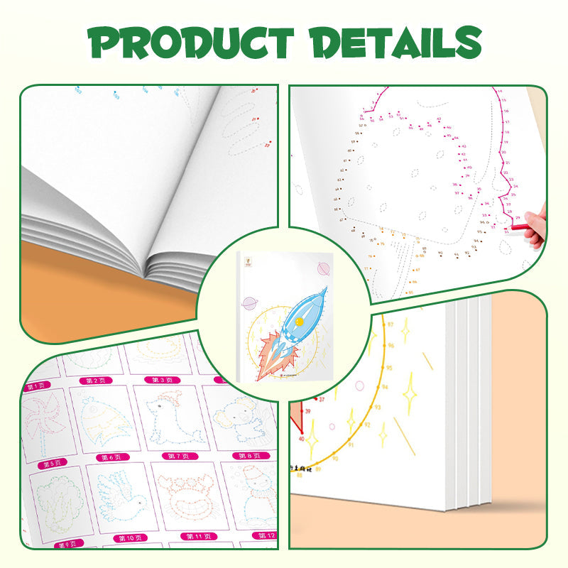 Paketet innehåller : 1 * Utmanande och roliga prick-till-prick-böcker för barn