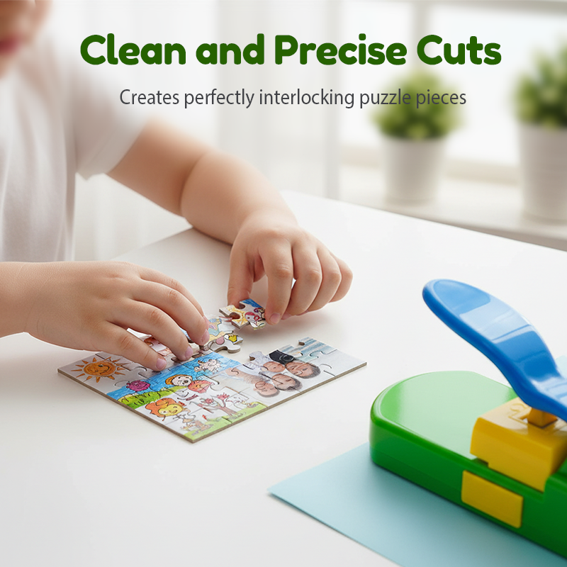Förvandla dina favoritfoton eller teckningar till unika pussel. Den ergonomiska spakmekanismen krÀver minimal anstrÀngning, vilket gör det enkelt för vem som helst att skapa pusselbitar med bara ett tryck.