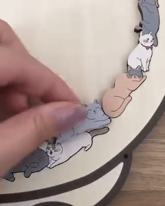 Varje pusselbit har sin egen form â vissa Ă€r katttassar, andra avbildar katter i lekfulla eller vilande poser. Varje passform kĂ€nns exakt och tillfredsstĂ€llande, vilket förvandlar varje sammankoppling till ett litet ögonblick av prestation.