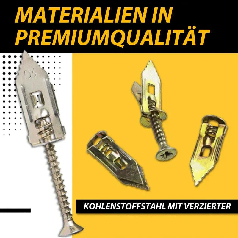 Självborrande ankarbultar har en expansionsdesign i de räfflade ankarna och ett avsmalnande vasst huvud som expanderar på två motsatta sidor när bulten dras åt, vilket ökar hållkraften. Räfflad på båda sidor för att öka metallankarnas upphängningskraft upp till 66 lbs. Perfekt för upphängning av alla typer av föremål i hemmet, t.ex. tavelramar, lampetter, gardiner, klockor, växter etc.