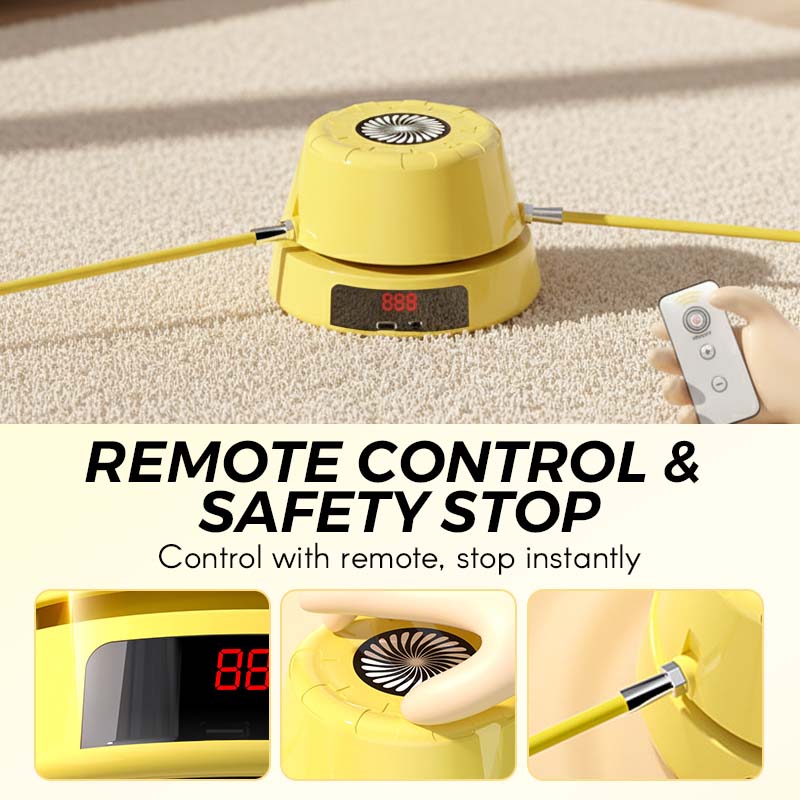 FJÄRRKONTROLL OCH OMEDELBART SÄKERHETSSTOPP – Styr ditt träningspass enkelt med den intuitiva fjärrkontrollen, justera hastigheten eller pausa på avstånd. För säkerhets skull, kliv helt enkelt upp på enhetens ovansida för att utlösa en intelligent, omedelbar stoppmekanism. Detta säkerställer att reprotationen stoppar omedelbart, vilket förhindrar olyckor och ger sinnesro.