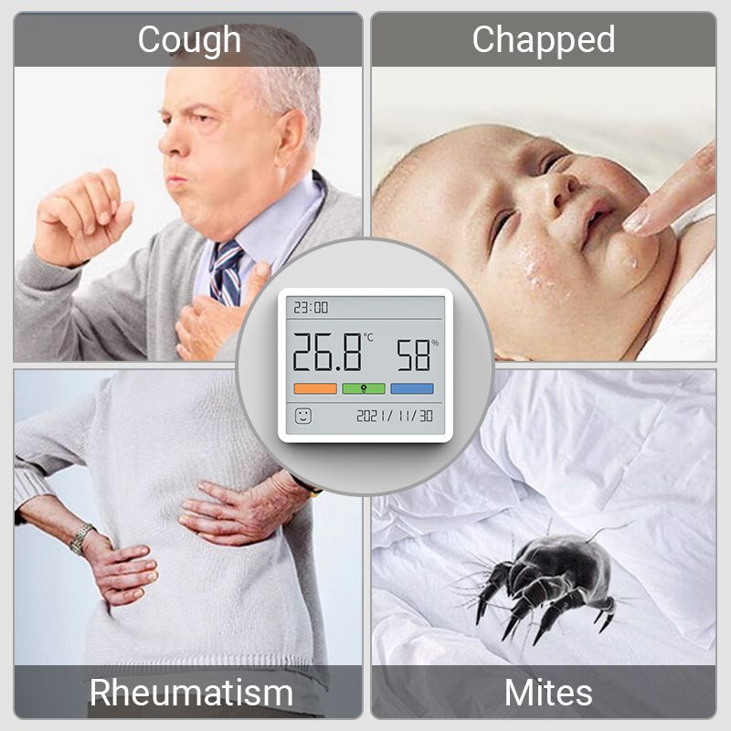Bibehåll optimala inomhusförhållanden för ditt välbefinnande och din komfort. Temperatur- och luftfuktighetsmätaren hjälper dig att enkelt hålla koll på och kontrollera.