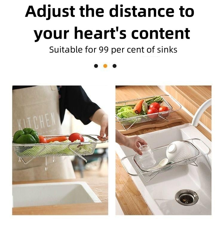 📏🏠Utbyggbar design för mångsidig användning:Vårt dräneringsställ har en innovativ utbyggbar design som anpassar sig till olika diskho-storlekar. Oavsett om du diskar, tvättar grönsaker eller frukt, så uppfyller detta ställ alla dina behov och är ett oumbärligt verktyg för varje kök.