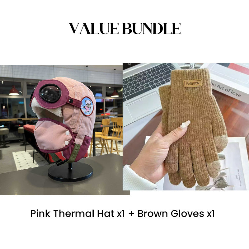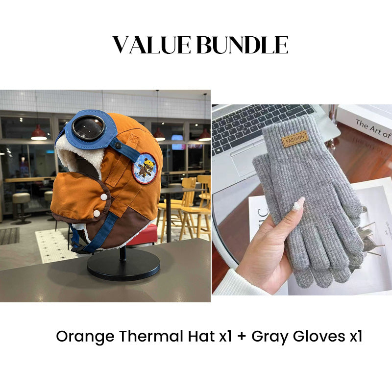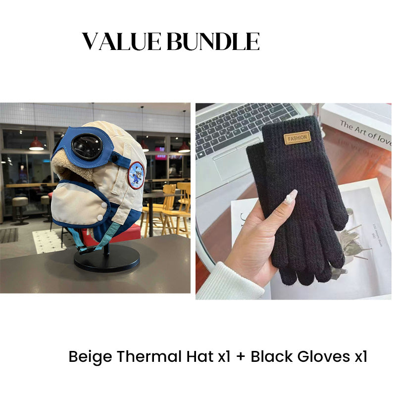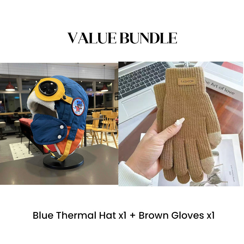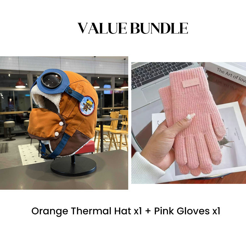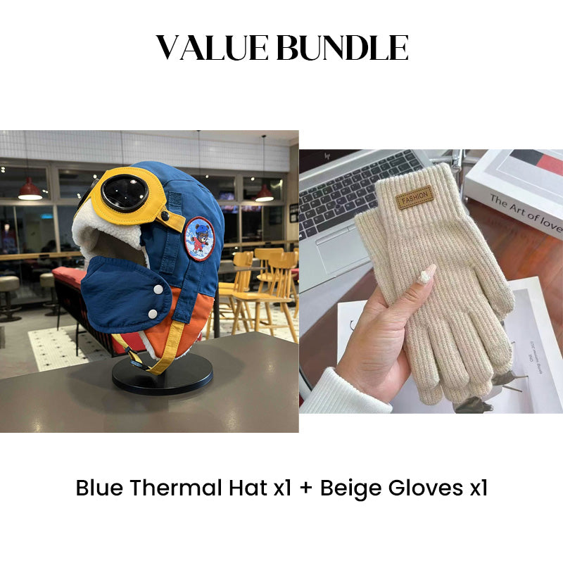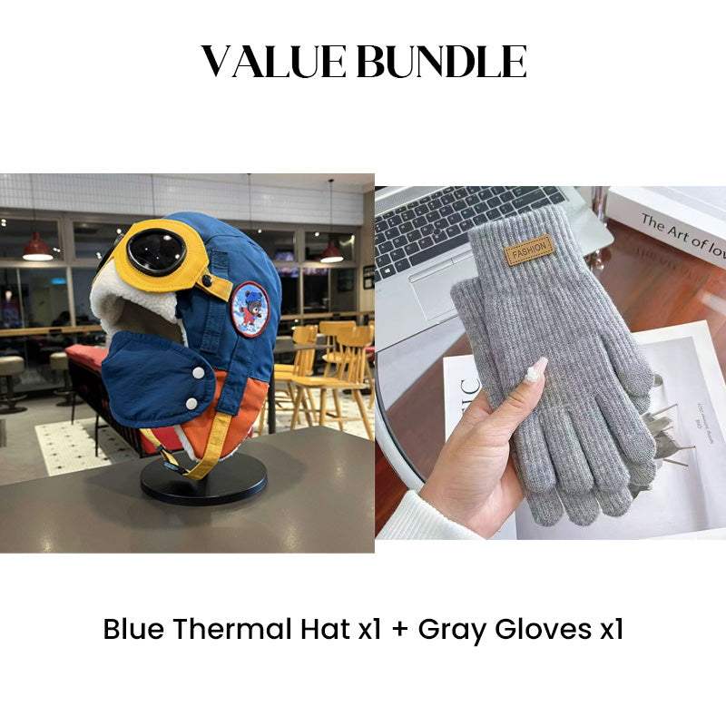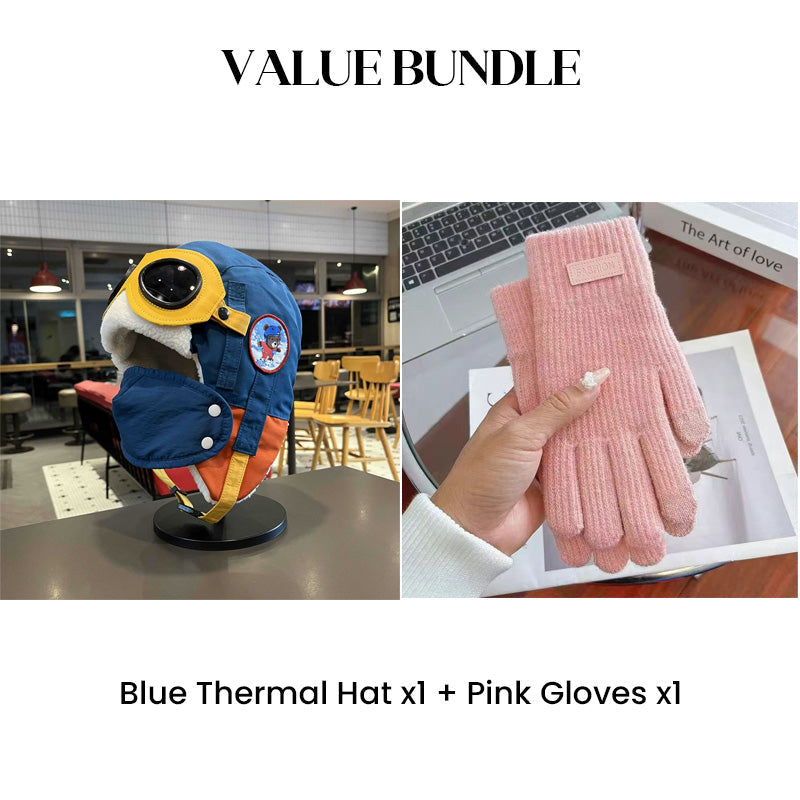 Värdepaket: Barnens vintermössa med hörselkåpor och mask + handskar