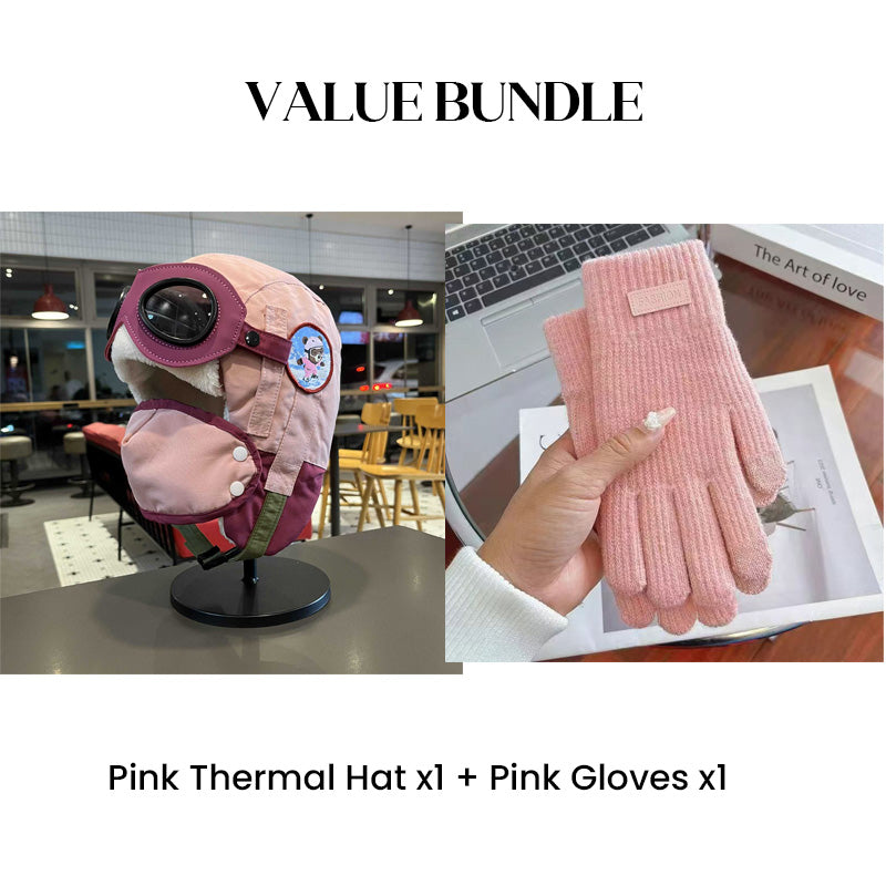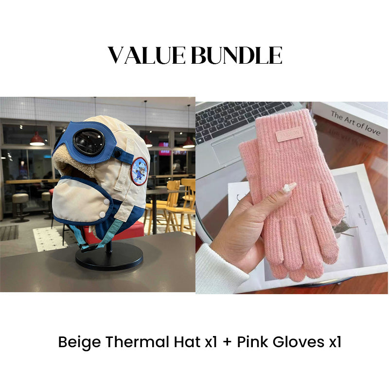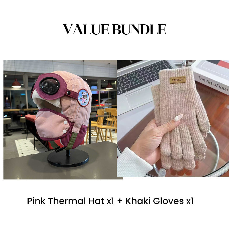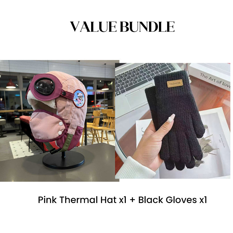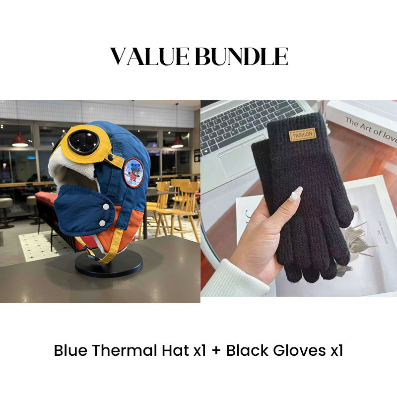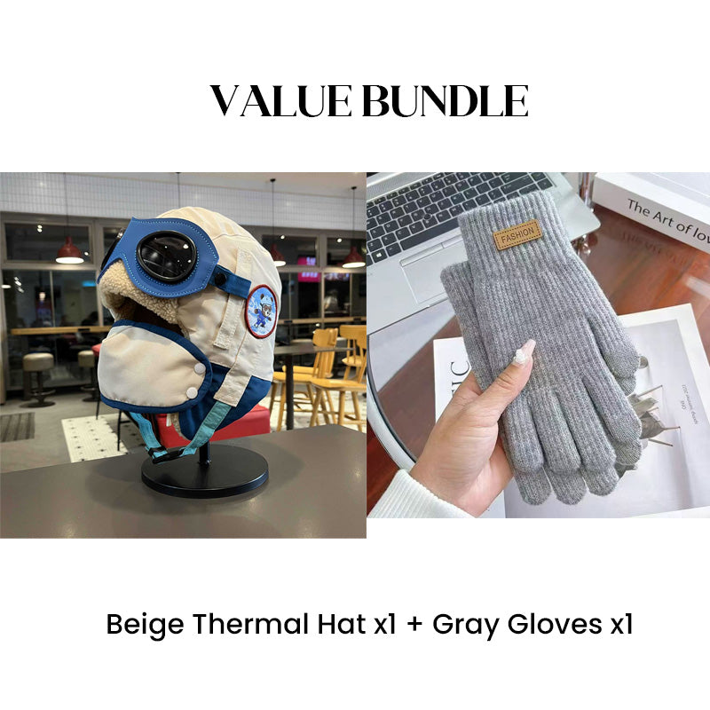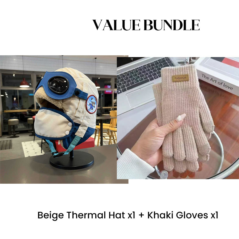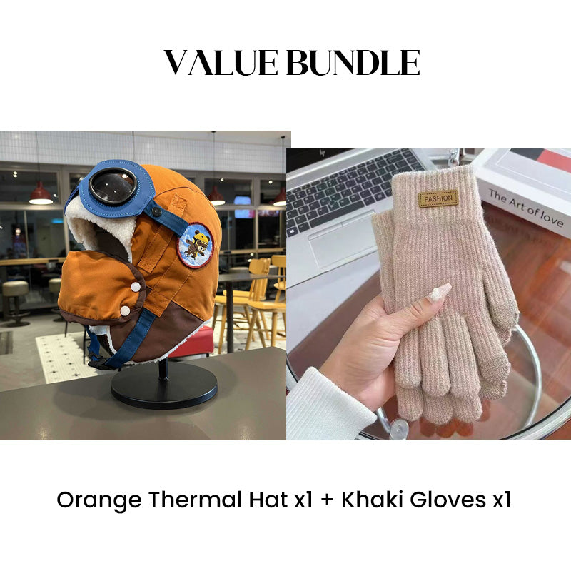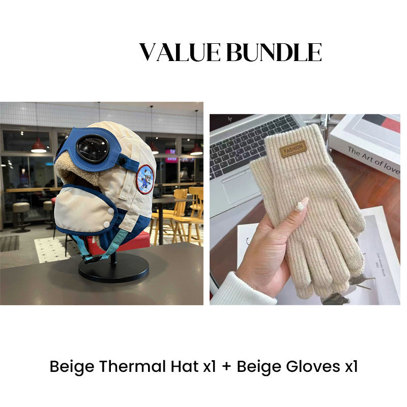 Värdepaket: Barnens vintermössa med hörselkåpor och mask + handskar