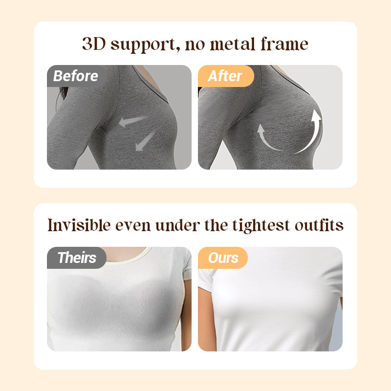 WIRE-FREE FREEDOM: Enjoy complete freedom of movement without sacrificing support. The smart W-shaped structure lifts and secures your bust naturally, eliminating uncomfortable poking and digging from traditional underwires for a truly liberating experience.