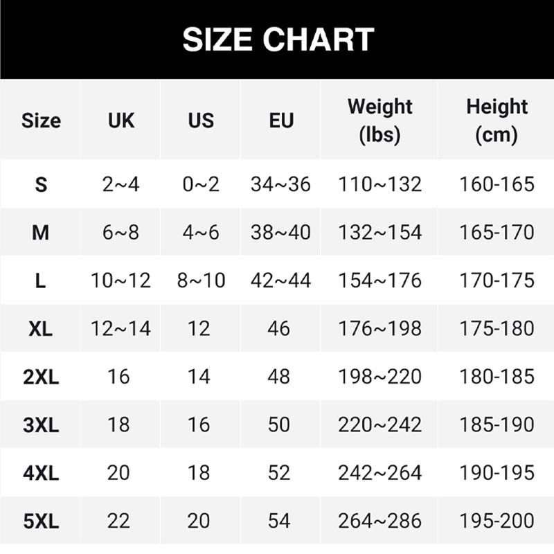 Storlekar: S, M, L, XL, 2XL, 3XL, 4XL, 5XL